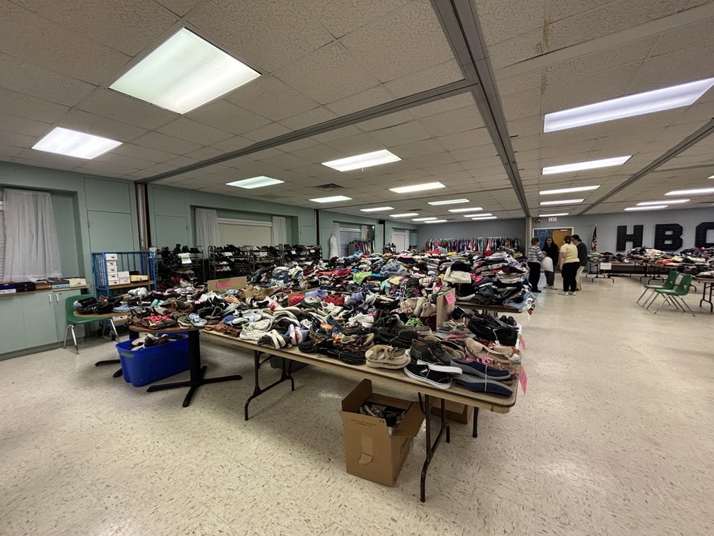 Utilizing church volunteers to do the big job of carrying and organizing all of those donations, Heritage hosted its first large-scale giveaway in the parking lot in the fall of 2020. That year, 378 families “shopped” for clothes. In 2021, what became twice-annual giveaways had moved indoors to the church fellowship hall and kept growing. By 2023, the number served had grown to 740 and in 2024, it was nearly 1,300.